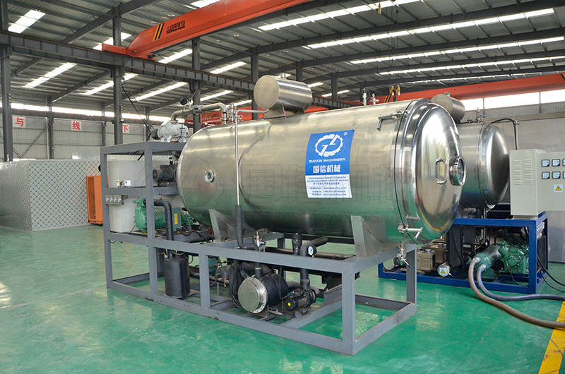冷凍真空干燥是將切制好的物料,在封閉的容器中快速冷凍,然后降低容器內(nèi)的壓力,使速凍的物料處于真空狀態(tài)下,再加熱使物料內(nèi)部的冰晶直接升華成水蒸氣排出,物料在低溫狀態(tài)下脫水干燥。干燥后產(chǎn)品的營養(yǎng)成分、色澤、味道、形狀等變化很小,產(chǎn)品質(zhì)量較高。但冷凍真空干燥設(shè)備投資大、運(yùn)行成本高,對于效益好、經(jīng)濟(jì)價(jià)值高、要求嚴(yán)格、產(chǎn)量不大的物料進(jìn)行干燥比較適用,如人參、枸杞、黃氏等。目前,國內(nèi)在脫水蔬菜加工中,冷凍真空干燥應(yīng)用較少。