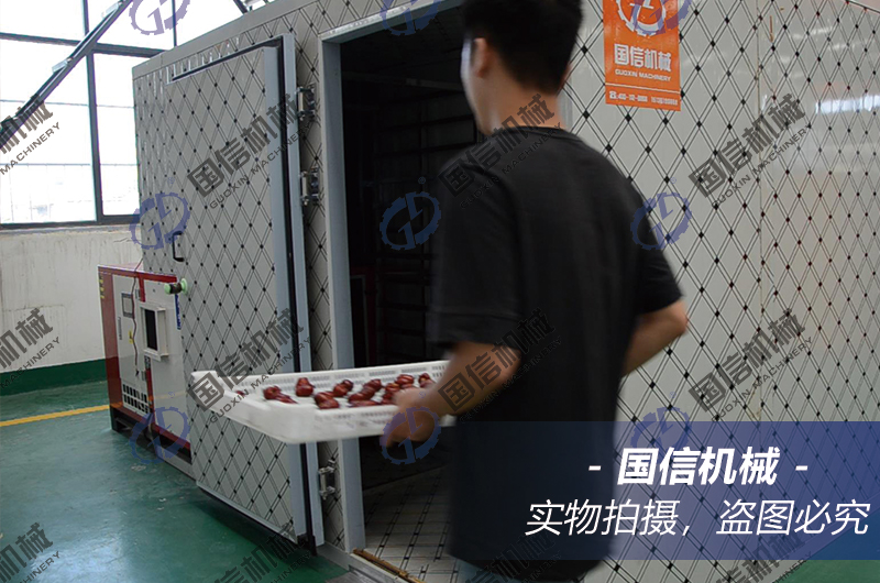 想要烘干紅棗,有動態(tài)和靜態(tài)兩種烘干方式可供選擇。動態(tài)即將新鮮的紅棗放入上料輸送機中,在鏈條的帶動下,層層循環(huán)翻轉進行烘干;而靜態(tài)的烘干,則是將新鮮的紅棗放置在托盤內(nèi),整齊擺放在烘干房中,靜置烘干。兩種不同的烘干模式,均可以保證紅棗的烘干效果,完成品質烘干。